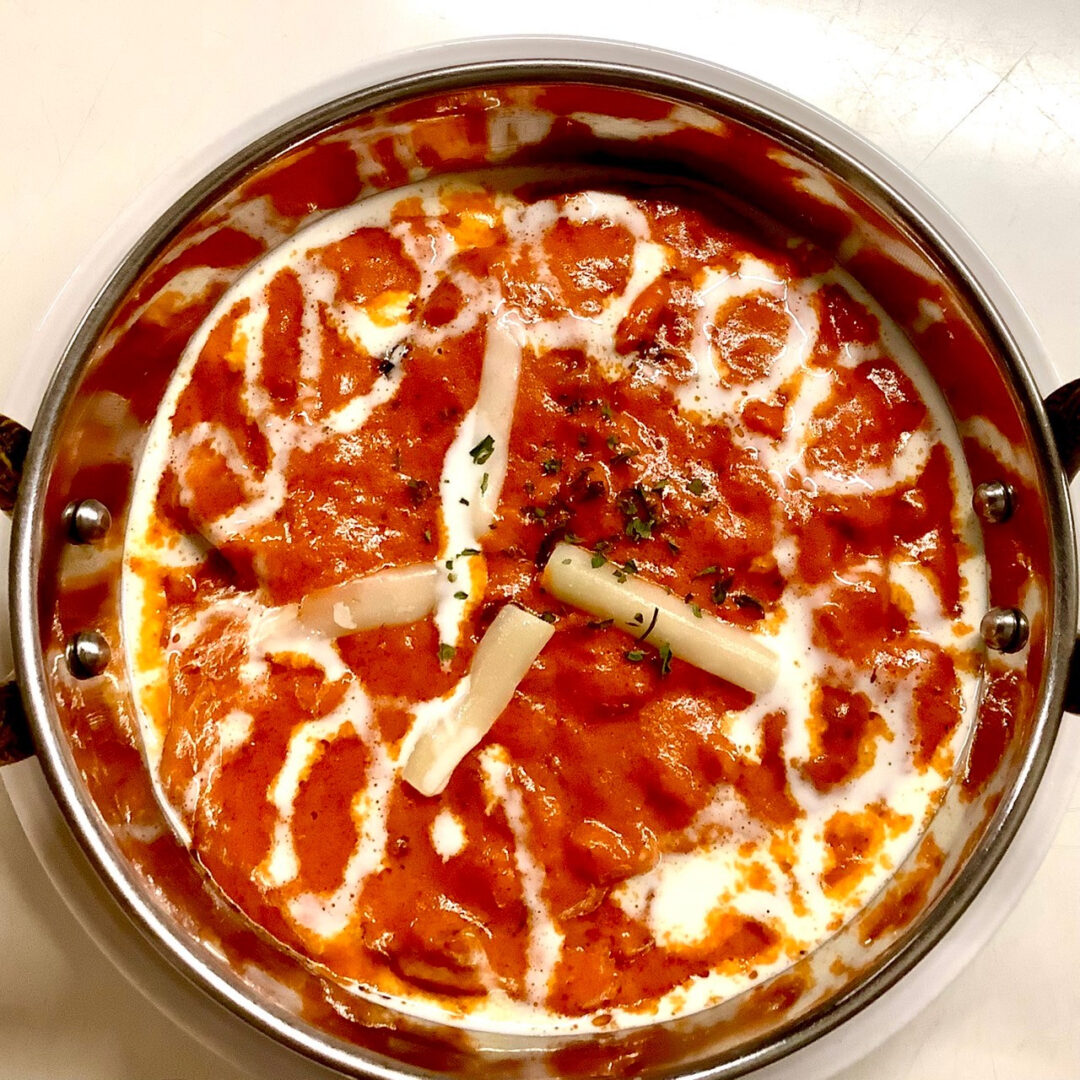 バターのコクとトマトの酸味が絶妙にマッチした『チキンバターマサラ』は、スパイスの香りがたまらない逸品です