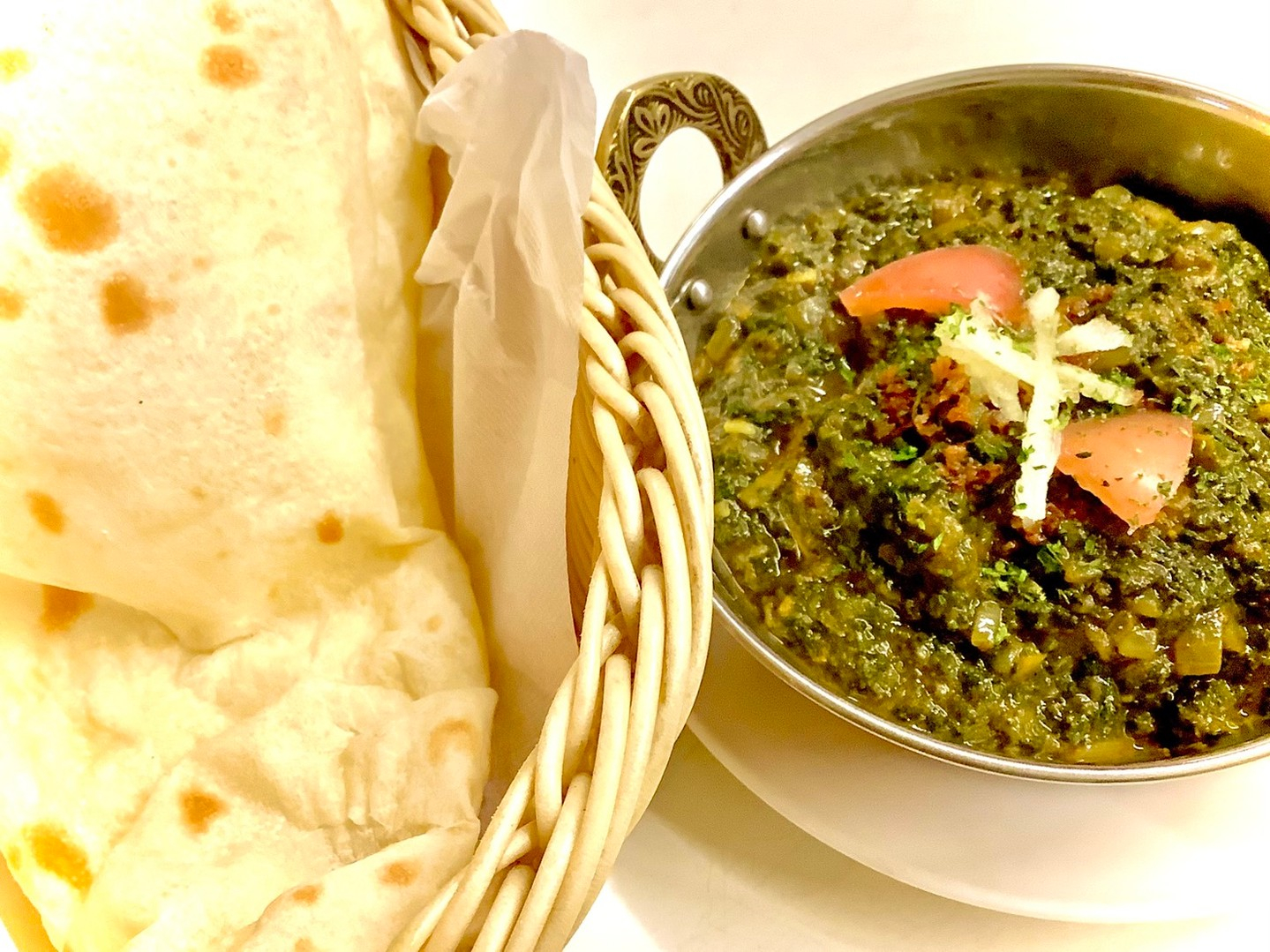 サグマトンとハーフナンサグマトンとハーフナン ほうれん草のカレーは、どれも美味しく人気のカレー マトンは、意外とクセが無く美味しいですよ もちもちナンと一緒に召し上がれ 今日も『口福』な一日を! 皆さまのご来店をお待ちしております